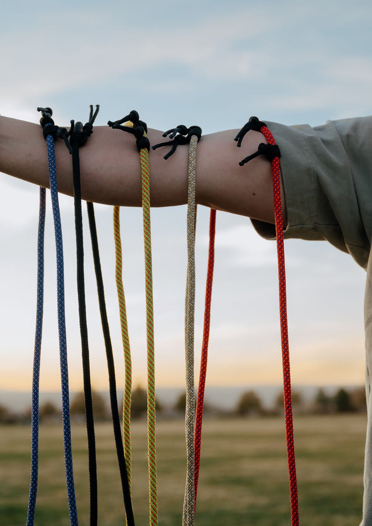 The Hands Free Mini Slip Leash is assembled by hand in the U.S.A. from 7mm anchor cord. This is the same cord that climbers use, and it is incredibly strong and durable. The loops at either end of the leash are created with industrial aluminum clamps that are applied with a 3-ton compound press. We cover the clamps with heavy-duty heat shrink tubing for a clean look.